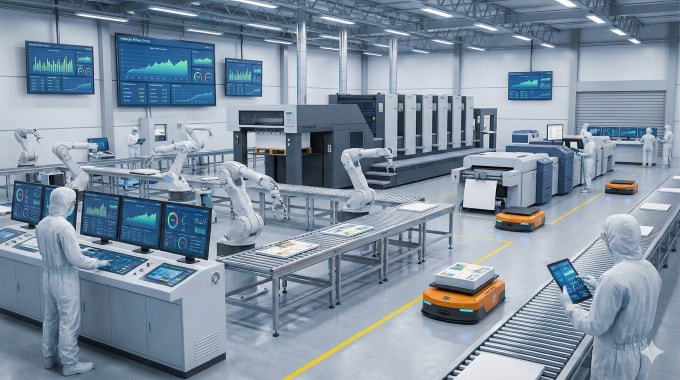 - 刷版搬送や刷本移動時でのロボット導入を推進。オペレーターは生産に集中できる体制の構築を行う。